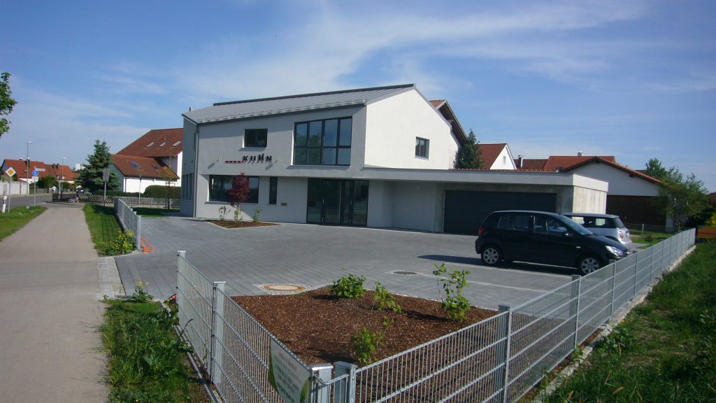 Neubau eines 2-geschossigen Gebäudes mit Arbeitsplätzen im Erdgeschoss sowie Büro- und Sozialräumen im Obergeschoss. Die kubische Grundform folgt dem Grundstückszuschnitt.